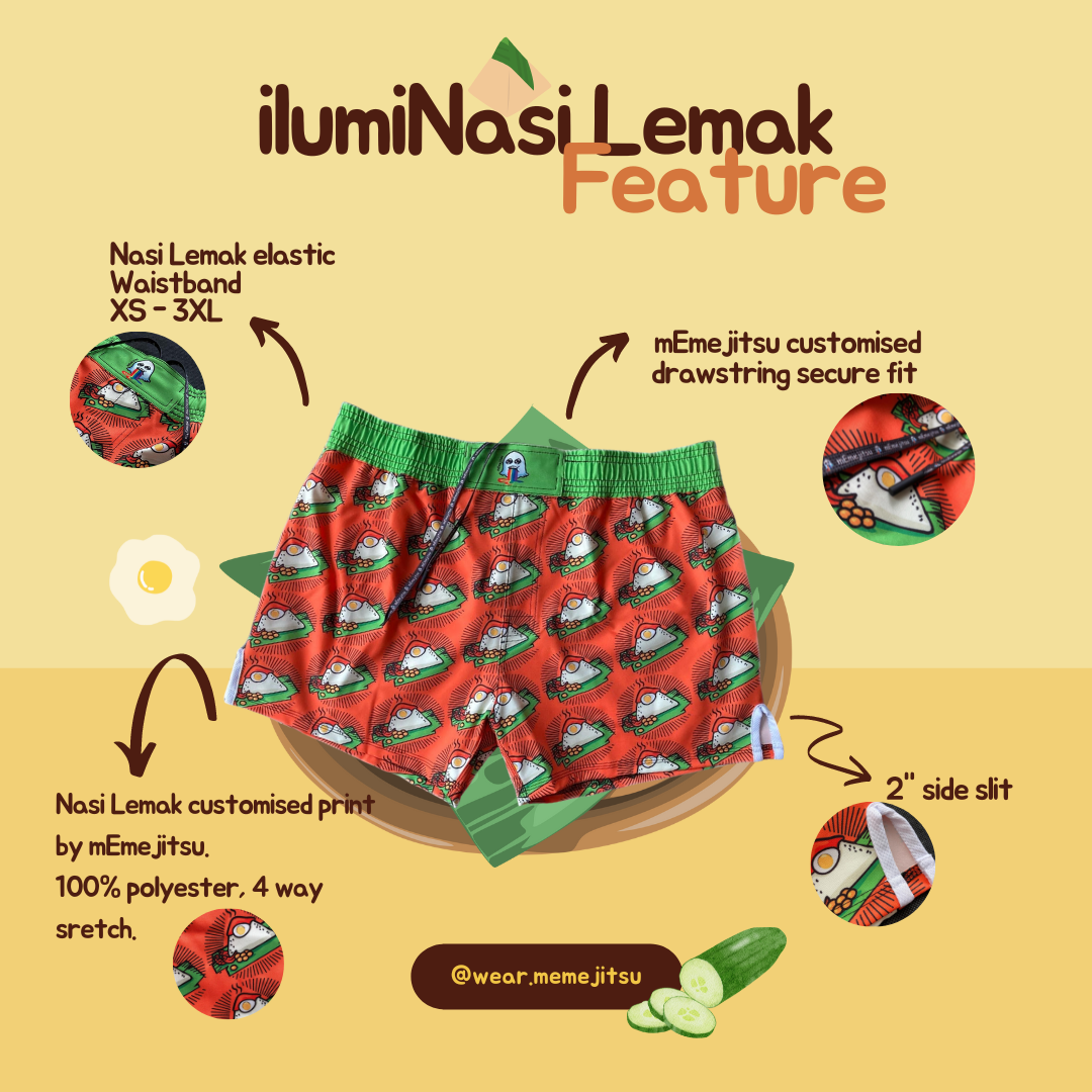 Ever thought about wearing a boxer for sports and martial arts ah? Now you can liao. Memejitsu shorts ah… is suitable for rolling la, grappling la or striking oso can. In a way oh, if you wearing the right size, it will snug and won’t accidentally expose 走光!because ah… every bit is customised with care and veli detail, from the colours la, material, cutting, sizing, waist string, sew style, and side slit. All in all, you can sleep with this shorts and then ah! terus go train. No issue, steady pombibi. Just remember to put deodorant la, if not ur training buddy pengsan leh.